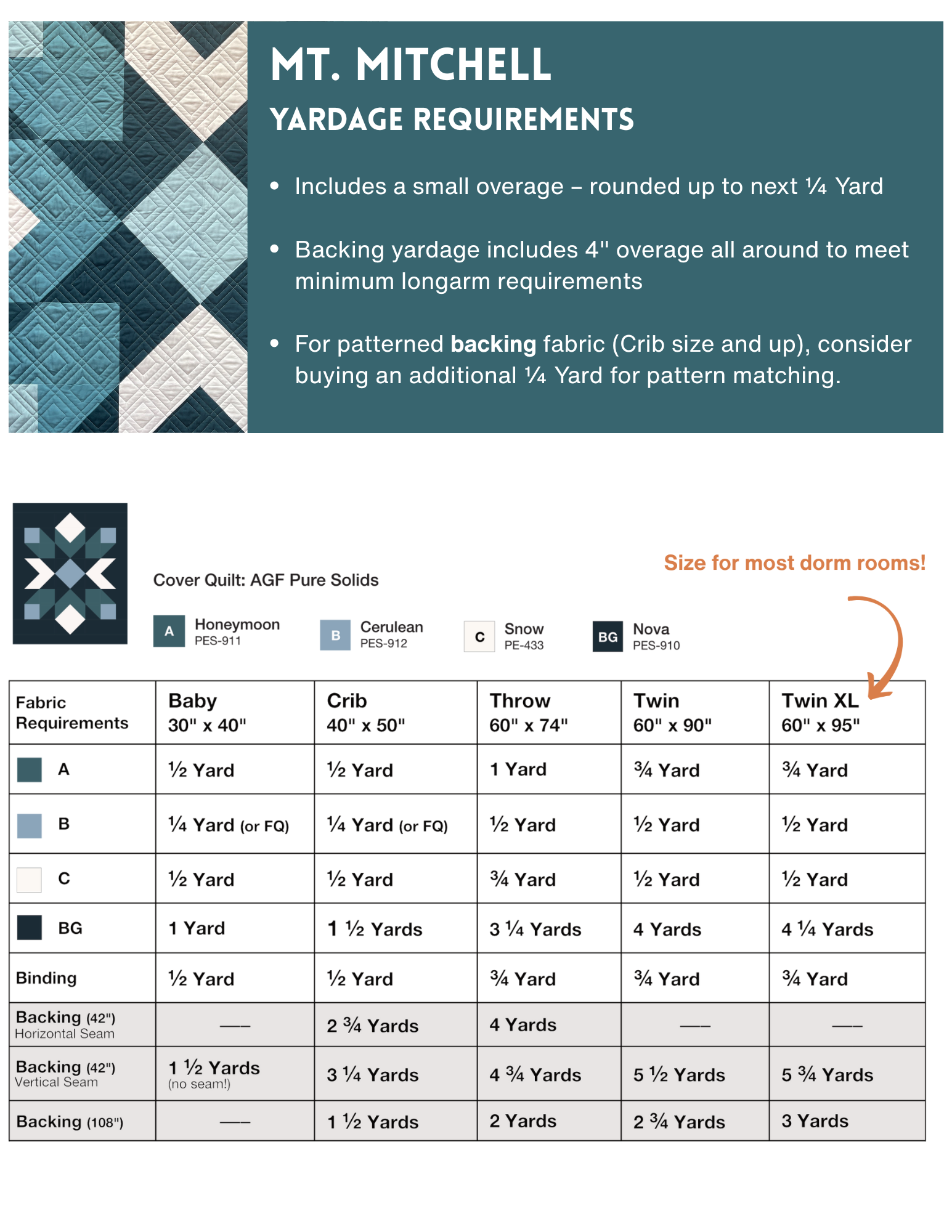The Mt. Mitchell pattern has been through technical editing and was tested by beginner and experienced quilters. The pattern includes easy step-by-step instructions, clear diagrams, links to technique videos, a coloring page, printable labels, and more.